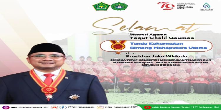 Selamat atas Penganugerahan Tanda Kehormatan Bintang Mahaputera Utama Kepada Menteri Agama Yaqut Cholil Qoumas dari Presiden Joko Widodo.