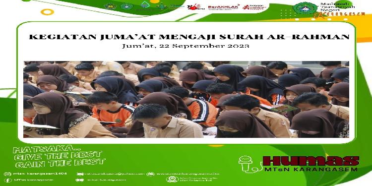 Amlapura. Jumat, 22 September 2023. Kegiatan rutin Jum'at mengaji dipagi hari ini yakni membaca surah Ar-Rahman.
