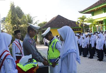 Amlapura, puluhan siswa MTsN Karangasem mengikuti upacara pelantikan Patroli Keamanan Sekolah (PKS) pada Senin pagi...